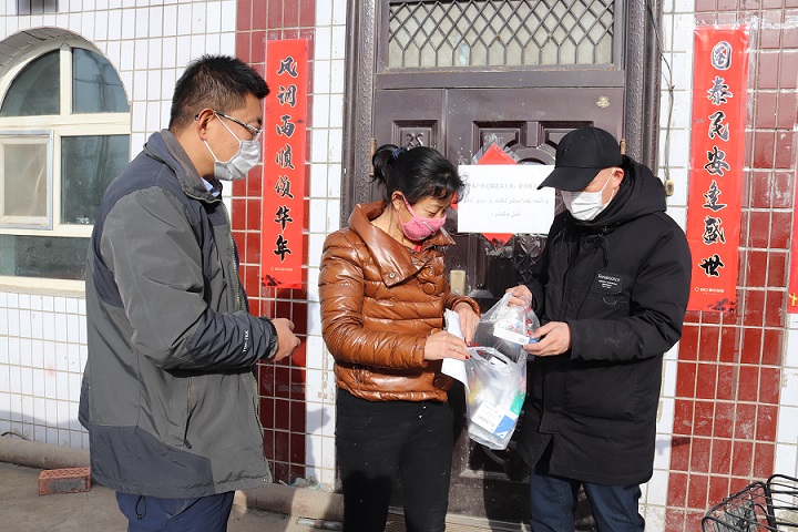 当日,张菊发现母亲的高血压药快没了,而父亲血糖又急剧升高,急需胰岛素等药品。村第一书记、工作队长翟磊接到张菊的求助电话后,叮嘱她和家人不要出门,在核实确认好药方信息后,立即驱车前往县医院代购药品,因县医院药品不齐,随后又通过在县城各药店四处搜寻,最终把两位老人需要的药品买齐后迅速送到她们家中。