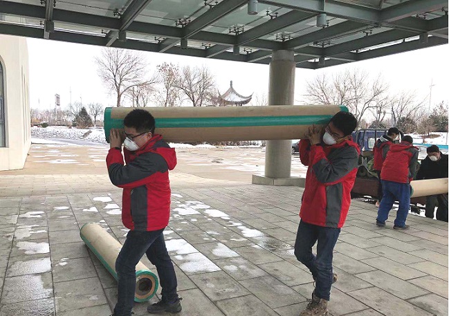 2月3日,中铁十八局集团三公司和五公司接到天津滨海新区政府通知,要求24小时之内完成汉沽7天酒店、汉庭酒店、天华宾馆等6家宾馆酒店公共区域地面PVC地胶改造、断桥铝隔断、地面硬化处理、门框封堵等施工任务,时间紧、任务重、标准高。