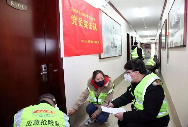 因春节期间突发疫情,很多地方还没复工,建材紧缺。中铁十八局通过多种渠道购进施工材料。在这场与时间赛跑的战役中,他们与病毒比速,发扬特别能战斗、特别能吃苦、特别能奉献的铁道兵精神,无私无畏,无怨无悔,倒排工期,人员、机械服从进度需要,夜以继日展开施工,争分夺秒,全力推进建设进度。 2月4日,他们仅用不到20小时时间完成6家宾馆 544个房间公共区域近4000平方米的地面PVC地胶改造和大量断桥铝隔断、门框封堵等工作任务,并顺利通过验收。