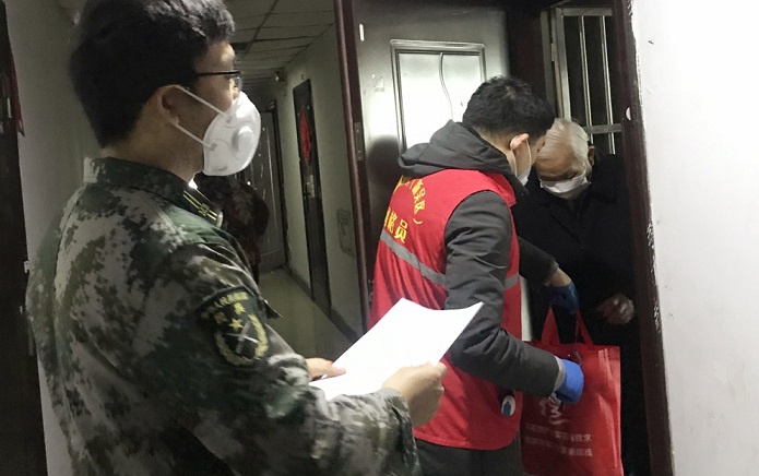 江苏省无锡市新吴区梅村民兵在疫情防控摸排工作中发现水晶城某户中仅有一名84岁老人独居,疫情防控期间生活物资采购不便。梅村民兵积极与香梅一社区对接协调,并与社区工作人员上门为独居老人送去方便面和水果等生活物资。梅村民兵联手社区解决了独居老人的生活困难,为独居老人带来了党和人民军队的温暖。当老人满怀感激的追问大家姓名时,年轻的民兵答道:“我们有一个共同的名字,中国民兵!”