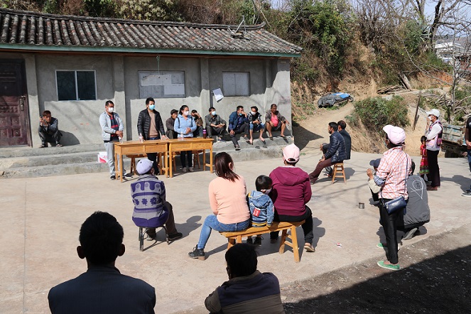 12日,宣传小分队来到了沙帽村苗族聚居的上村小组,分三场次就当前疫情防控的形势、最新科普知识、重要性以及对“云南抗疫情”扫码系统使用进行讲解,对苗族同胞们喜爱的唱跳活动进行再次劝止,对上村小组的疫情防控进行再部署,并针对当前烤烟生产、综治维稳等工作进行宣传。