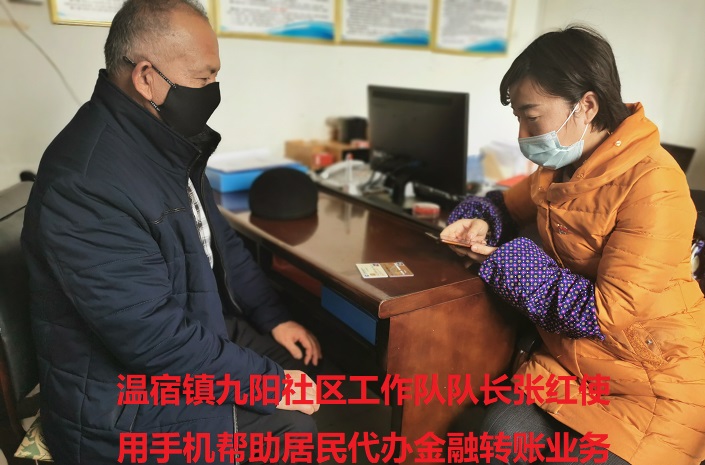 实行金融代办。通过走访,工作队队员及社区干部了解到在小区封闭式管理期间,部分居民因为无法去银行办理银行卡转账手续,影响了还贷款等业务,又担心由于无法按时还贷影响个人信用记录。特别是部分居民由于年龄、文化程度、语言文字等原因不会使用手机银行和网上银行。对此工作队队员及社区干部充分利用自己掌握到的金融知识,通过微信、支付宝、网银等方式帮助居民在手机上办理金融业务,实现足不出户就能处理各种金融转账业务。