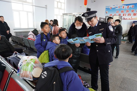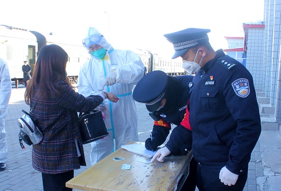 他是一名警察,同时他也是党员。同事们都笑着说:“派出所里他是最能说的一个人,就像一个复读机”。疫情期间,他和其他的执勤民警一样,每趟列车到站他都按时按点接车。候车厅有他的身影,虽然旅客寥寥无几,但他还是一遍又一遍给大家讲解防控疫情的知识以及在火车上的注意事项,有时还会上前帮助旅客排解焦虑;出站口,他和同事一起核对旅客身份信息并认真做好登记,辅助地方工作人员进行体温测量和人员带离等;派出所里,他耐心指导着新民警工作,防疫物品亲自核对、外来人员消毒亲自监督、防护手册知识学习亲自发布至工作群;每一项工作他都亲力亲为。