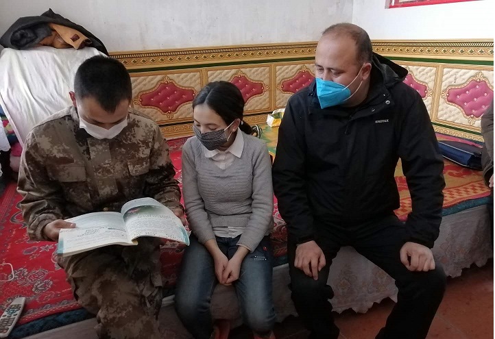 访惠聚工作队积极响应自治区教育厅的号召,结合入户走访、监测体温、宣传防疫知识、做好物资保障等途径,在开展疫情防控工作同时,加强督促孩子们的线上学习情况,让家长对子女加强管理,督促子女及时收看学习内容,加强对学生线上教学内容的学习并及时复习,要在指定时间内上线,打开电视机、电脑、手机等设备按时学习指定的课程内容。此外,“访惠聚”工作队还积极帮助学生们解决线上教学中出现的各种技术问题,确保每个中小学生和家长能正常使用。