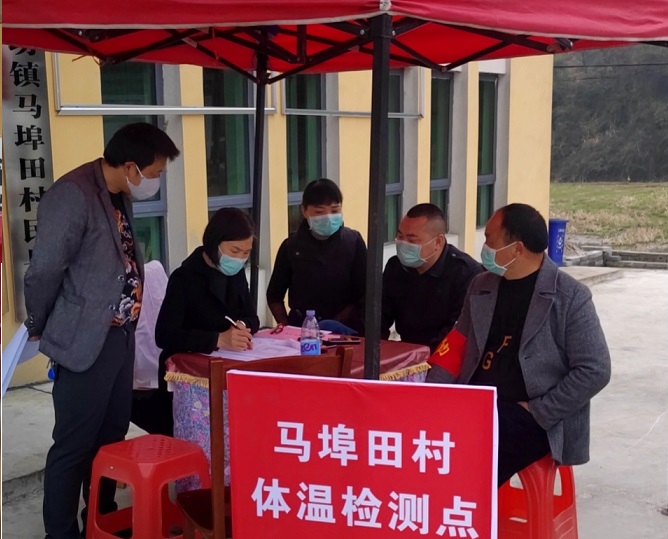 疫情就是命令,防控就是责任。石体云心中清楚,防控疫情除了宣传到位,武汉返乡人员是重中之重。阻击战骤然打响,马埠田村两委按照镇党委政府安排部署,放弃春节假期从脱贫攻坚冬季送温暖活动立即转入到疫情防控工作中。1月26日,村两委委召开紧急会议,要求以最快的速度对本村居住人员基本情况、近期外来返乡人员进行摸底调查、建档立卡,详细、准确掌握外来人员的返乡行动轨迹,排查出湖北返乡人员6人,全部通知他们居家隔离,每天两次由村医安排测量体温,同时按照4+1模式进行管控。