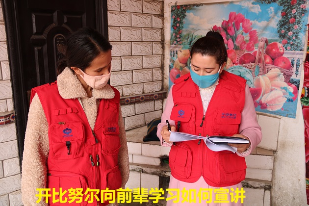 “新冠肺炎并不可怕,只要我们勤洗手、戴口罩、不聚集、常通风是完全可以预防的。”看着开比努尔·阿布迪米提熟练的将防疫宣传内容讲给村民,她的“老师”欣慰的笑了。从最开始上门不敢说话,到现在能主动给村民宣传各类防疫知识,即使防疫工作有层层困难,但这位00后女孩从来没有想过放弃。