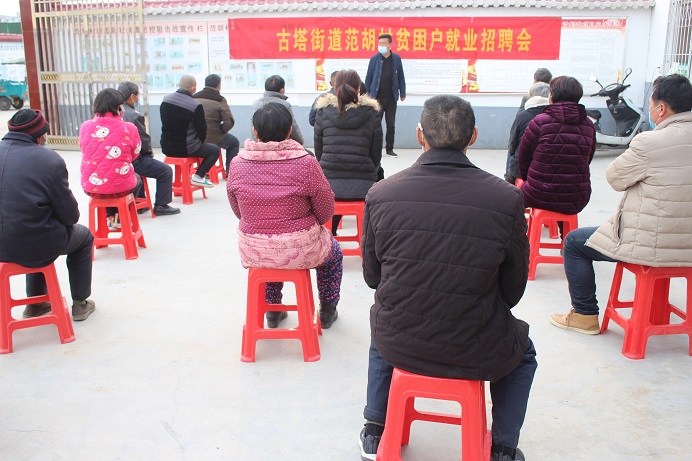 清风网讯(汝南县古塔街道 王付云) “今年是脱贫攻坚收官之年,我们村很多贫困户已经摘掉了贫困帽子,今后大家还要千方百计增加收入,防止再返贫。这次6家企业面向我们招工,我们要踊跃报名。”3月6日,汝南古塔街道范胡村党支部书记孙晓东在村部院子里,向20多名贫困户做务工招聘专场动员。