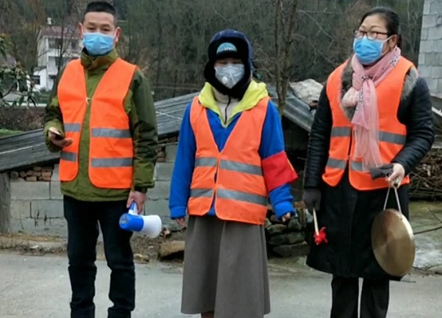 1990年出生的柯冬冬,黄石大冶金沙店人,2015年嫁入英山方家咀乡的锣塘坳村,女儿3岁半,儿子还是八个半月,婆婆帮其带小孩,公公舒华峰是老党员,村退休干部,老奶奶84岁,可谓四代同堂。王小玲是村妇女委员,公公75岁,婆婆74岁,两个老人也长年吃药和住院。丈夫在外帮人开货车。女儿读长高二(九)班。儿子在启慧中英文学校读六年级。王小玲,生于1978年,高中毕业,村妇女委员。疫情战斗一打响,柯东东,王小玲她们俩在村支书、主任的带领下,落实每一工作,骑上装有雨棚的摩托车风雨无阻奔走在抗疫情路上。锣塘坳村境内山顶上有一座药王庙,庙内香火不断,特别是大年三十和正月初一成群结队的人去拜祭药王菩萨。这次疫情防控任务刚好是这个时间,两位女同志顾不了与家人共吃年饭和寒冷爬山山顶的药王庙和村里挨家挨户宣传抗击疫情注意事项。她们作为家中的主妇,不得不舍小家顾大家。大年初一拿上小喇叭、铜锣去垸组发放宣传单并劝说解释,同时张贴宣传标语,共计发宣传单、宣传标语、横幅1000余份。初三摸排武汉黄冈返乡人员,宣传居家隔离并建微信群跟踪联系。