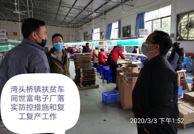 针对大部分企业反映的缺少防疫物资的问题,武冈市成立4个工作组对全市所有扶贫车间疫情防控措施进行地毯式摸排和走访,免费为扶贫车间提供防疫物资,共发放消毒水1000公斤、口罩1.7万个,确保扶贫车间复工复产和疫情防控两不误。同时,该市还在疫情期间实行特事特办,对符合条件的扶贫车间发放政府补贴,立审立批立发。截至目前,已发放各项奖补资金84.75万元,其中场地费和物流费补贴78万元,以工代训培训补贴4万元,一次性就业补贴2.75万元。