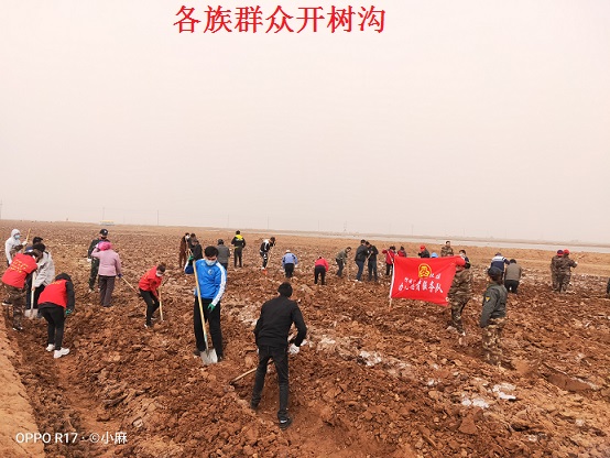 清风网讯(阿克苏市人社局:李正虎)为全面贯彻落实十九大精神和践行“绿水青山就是金山银山”的发展理念,充分发扬柯柯牙绿化工程精神,按照市委的统一安排,驻南苑社区“访惠聚”工作队带领社区干部、辖区居民和企业职工共计380名各族干部群众,齐聚阿克苏新豫农牧业示范基地开展为期9天,义务植树造林25亩,义务植树4000余株,掀起了春季植树造林的新高潮。