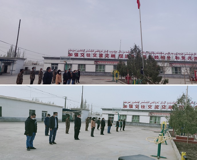 4月4日是向抗击新冠肺炎疫情斗争牺牲烈士和逝世同胞举行全国性哀悼活动的日子。4日上午10时,阿牙克库勒达西村“访惠聚”驻村工作队组织村委会、警务室、民兵等成员同步开展下半旗、防空警报鸣响、哀悼3分钟活动。