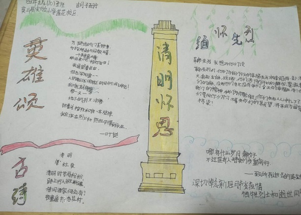 清风网讯(通讯员 徐秋爽 徐浪平) 清明节是中华民族祭奠逝者、寄托哀思、缅怀先人的传统节日。为了让学生们更好地了解中华民族的传统文化,引导同学们在缅怀先辈的情怀中,特别是在此次为抗击新冠肺炎疫情牺牲的英雄们志哀中,认知、尊重、继承和弘扬爱国主义精神,表达对先烈的追思和敬仰,4月4日,英山县实验小学开展了以清明节为主题的手抄报展示活动。