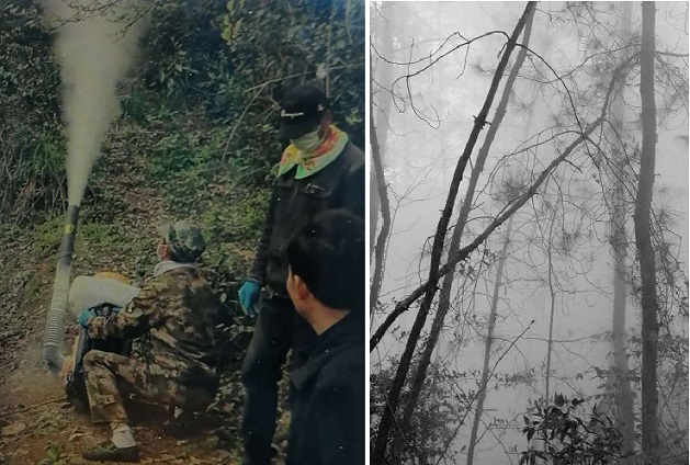 清风网讯(通讯员 谭百康 李永存) 针对近期湖北英山县杨柳湾镇腰磨畈村一组“罗家龙”地带森林深处出现大量松毛虫的现象,英山杨柳湾镇腰磨畈周边三村联合联合对森林的松毛虫进行防治,以确保山林不受侵害,保证居民正常生活不再受影响。