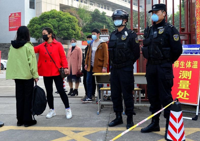 为确保学生顺利返校,学校党总支书记、校长夏文强带领全体工作人员7点就赶到学校做准备,指导开学防疫的相关工作。7点30,学生开始分批次有序入校,全面消毒—体温监测—前往各班指定教室—填写开学登记表—递交健康信息申报和承诺书,一切有条不紊地进行着。为从源头上阻断传染源,禁止家长陪同入校,学校建立了严密的校园防控网络,制定了详尽的方案,对每一个环节进行严密把关,做到人员到位、物资到位、措施到位、工作到位,各个环节万无一失,保障师生健康安全,维护校园安全稳定。学校大门口,学生入校秩序井然,排队接受手消毒测量体温等;食堂里,师生实行错峰就餐,进入食堂大门前要测体温,学生分年级分班对应位置单人单桌同向就座;课堂上,一旦有学生出现发热不适症状,老师能迅速准确应对。学校每层宿舍楼都设置有体温测量点和备用宿舍,工作人员及时了解学生情况,以防突发情况发生。教师与学生志愿者自发有序为返校学生运送行李,成为了校园里一道亮丽的风景。