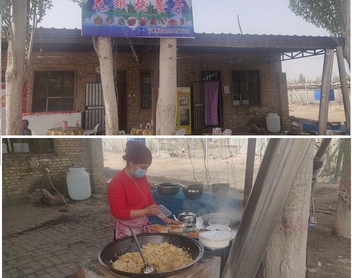 今日,图热依赛姆·赛麦提的“花蛾快餐厅”终于开业了。虽然面积虽不大,但是干净整洁、温馨舒适,主要经营各类面食以及美味的炒菜,真是吊足了村民的胃口,亲朋好友、村干部、工作队也纷纷前来“捧场”。