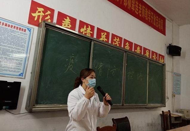 清风网邵阳讯(通讯员王祥斌) 为指导学校做好疫情防控期间开学工作,保障广大师生员工生命安全、身体健康和学校平稳运行,4月11日下午,武冈市法相岩街道第一社区卫生服务中心副主任邓纯瑛(健康教育专干)走进了武冈二中对该校初一初二高一高二教职工进行传染病防控培训,做实各项防控工作,确保全体师生身体健康、教学井然有序。