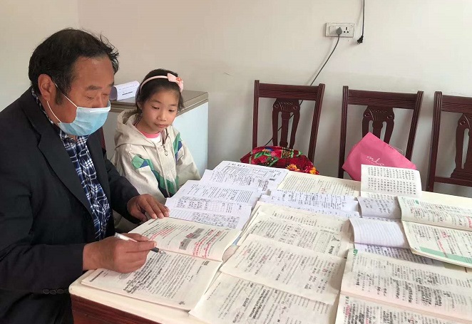 上到岭上,她停下车子,陪我走到周琳家坐下,周琳父母倒茶、递烟,客气得不得了。我说明来意,家长连忙叫周琳把疫情下宅家做的两个多月的作业拿出来,哈哈,十来本,本本做完,太漂亮了,令我心喜,此生不叫我失望,我来到她家走访直得。凤霞园长拍照,留影,发到学校群,供同学们学习学习。