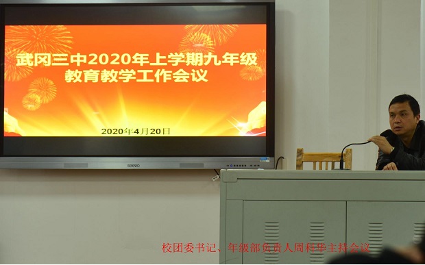 清风网邵阳讯(通讯员 许国斌 段媛 王桂花) 为进一步提高本届毕业班教学质量,统筹抓好初三各项教学管理工作,4月20日晚上7:00,武冈三中在教工会议室召开了2020年春季九年级教育教学工作会议,会议由校团委书记、年级部负责人周科华主持,全体九年级教师参加会议。