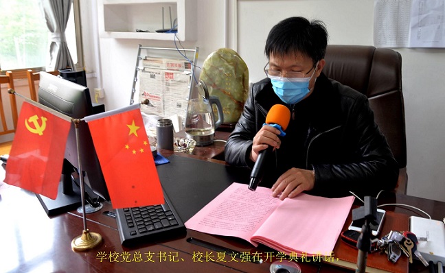 学校党总支书记、校长夏文强为开学典礼发表了重要讲话,对上一学年的工作和全体师生取得的成绩做了总结表彰;对师生2020年新学期提出了新的希望和要求,切盼全体学生在疫情面前能够更加明白学习的重要性。夏校长分享了在疫情期间的英勇所见所闻和感悟。他勉励全体学生向逆行的英勇学习,热爱科学、尊重科学,树立献身科学的远大志向,同时不忘养成良好的卫生和运动习惯;他号召全体师生深刻认识人类命运共同体这一全球价值观,守护好人类共同的家园,以大情怀、大格局拥抱春天,拥抱未来,用实际行动诠释强大的责任心和爱国心。最后他表示,疫情防控不到收兵的时候,我们决不能放松警惕,一边防疫,一边努力学习,坚决做好防疫学习两不误。疫情当前,学校号召同学们出入校门、课堂学习、课间休息、食堂就餐、公寓就寝、交通出行、卫生习惯等方面大家都要自觉遵守,养成文明守纪的生活习惯。