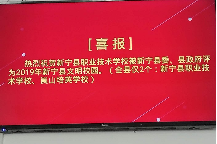 清风网讯(通讯员 肖乾勇 李双希) 日前,新宁县文明办公布了2019年县级文明考核先进单位名单,新宁县职业技术学校学校荣获“文明校园”称号。