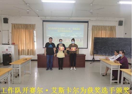最后,工作队副队长开赛尔•艾斯卡尔对本次活动进行了总结:“本次知识竞赛一方面是为各支部基层党员搭建一个展示自我的平台,检验各基层支部民族团结知识学习的成果,另一方面全村各族党员干部群众要以此次知识竞赛为契机,共同自觉维护民族团结、促进社会稳定,为实现新疆工作总目标做出自己应有的贡献。”