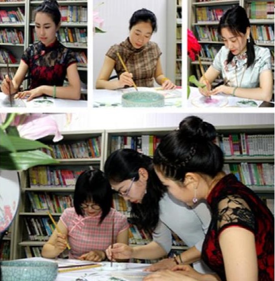 从草稿到上色,在老师的带领教导下,学员们根据自己对于团扇的不同认识用心描绘着各色图案:或是出淤泥而不染的莲花,或是庭院枝头休憩的鸟雀,或是融入创意元素的花样。