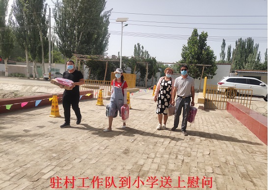 阿瓦提县水利局驻英艾日克镇吐格曼贝希村访惠聚工作队来到吐格曼贝希村小学对30名贫困学生及三好学生进行慰问,为小朋友们送去节日祝福,向全体教师致以亲切问候,为孩子们送上书包、文具等慰问品。第一书记张成斌认真听取了儿童的学校生活状况,详细了解了他们的生活学习情况,预祝他们“六一”儿童节快乐,同时鼓励孩子们要勇于面对暂时的困难,鼓励孩子们好好学习,珍惜老师们的辛勤付出,并学会自立自强,乐观向上。
