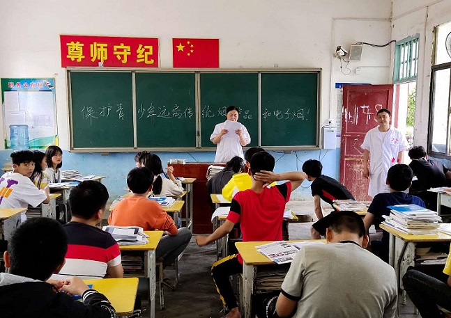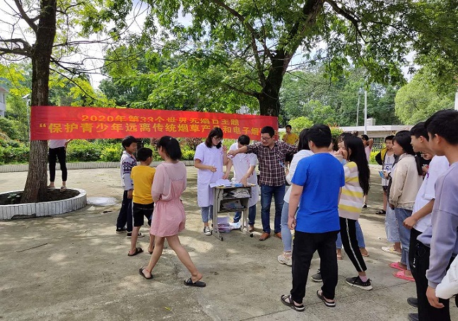 清风网讯(通讯员 戴先兆 董丹) 为加强烟草危害和控烟政策宣传,维护人民群众健康,广泛宣传烟草危害,提高公众健康意识,倡导健康生活方式,在全社会营造良好的控烟舆论氛围。5月29日,武冈市双牌镇卫生院医务人员走进龙从中学举办了“保护青少年,远离传统烟草产品和电子烟”2020年世界无烟日主题公众健康咨询活动。