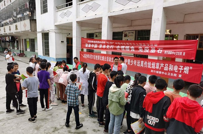 清风网讯(通讯员 姜方余 王理)今年5月31日是第33个世界无烟日,为创健康无烟环境,倡导科学、文明、健康的生活方式,进一步宣传控烟知识,日前,武冈市荆竹镇中心卫生院5名新时代文明实践志愿者走进朱溪中学开展主题为“保护青少年,远离传统烟草产品和电子烟”的“世界无烟日”健康教育宣传活动。