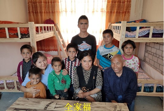 周末的时候,古丽仙•阿布拉一家人都到齐了,孩子们在明亮干净的房间里帮妈妈干家务,看到该同志去了,就全都围了过来,一大家子人在国语水平不错的儿子的翻译下交流的很好,还一起合影,留下了难得的全家福。后来,该同志将“全家福”做成了相框,一张留给了自己,一张送给结亲户一家。去送全家福的时候,孩子们叽叽喳喳的围在一起看着极其和谐全家福,开心的不得了。最小的孩子麦麦提•依明江更是一个人对着全家福看了很久。