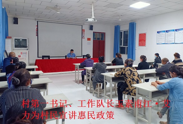三是扩大声势,营造氛围,坚定信念跟党走。在前期理清惠民账目工作基础上,该村采取多种方式引导群众明白惠从何来、向谁感恩,坚定信念跟党走。将前期梳理出来的惠民政策摸底表,经农户签字确认后,张贴入户,让群众明白享受了哪些惠民政策。针对不同家庭,享受的不同惠民政策,组织工作队员、派出单位、村“两委”干部通过日常走访入户、肉孜节慰问等时机,有针对的开展“精准滴灌”式个性宣讲,做好群众感党恩宣传教育,向群众讲明惠从何来,积极引导群众增强感恩意识。采用农民夜校、村干部培训 、党员大会、村民大会等形式,开展“大水漫灌”式集中宣讲,将九项惠民政策、“五个认同”以及近年来阿瓦提县、拜什艾日克镇社会面貌发生的重大变化作为宣讲重点,扎实开展全方位、全覆盖宣讲,不断提升感恩教育实效。