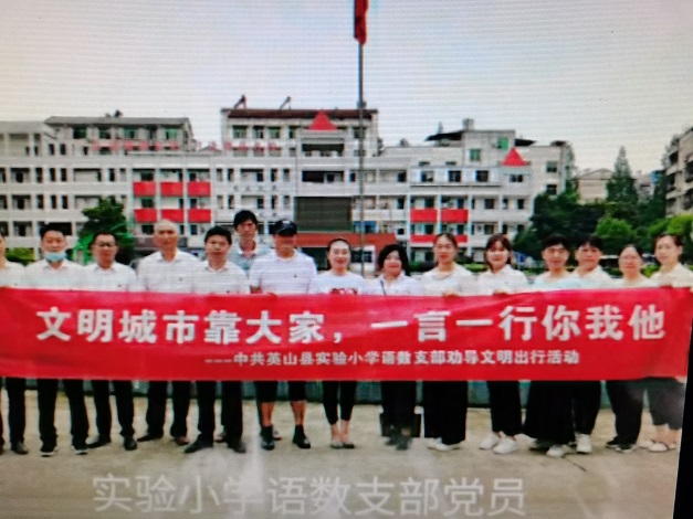 在喜迎建党99周年之际,英山县实验小学党总支号召全体党员干部,各支部用实际行动开展一次活动,庆祝党的生日。这次该校语数支部开展文明交通劝导志愿服务就是活动内容之一。