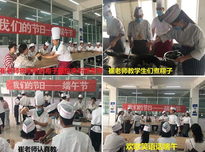 清风网讯(第一师阿拉尔市职业技术学校 ; 姜红 淡任 陈琼华)6月21日下午第二节课,第一师阿拉尔职业技术学校的学生餐厅三楼,面点实训室内粽叶飘香、欢声笑语不断;这是19烹饪一班师生以 “健康 绿色 参与 体验”主题,开展的“我们的节日-端午节”实训课,60余名教师参加公开课。