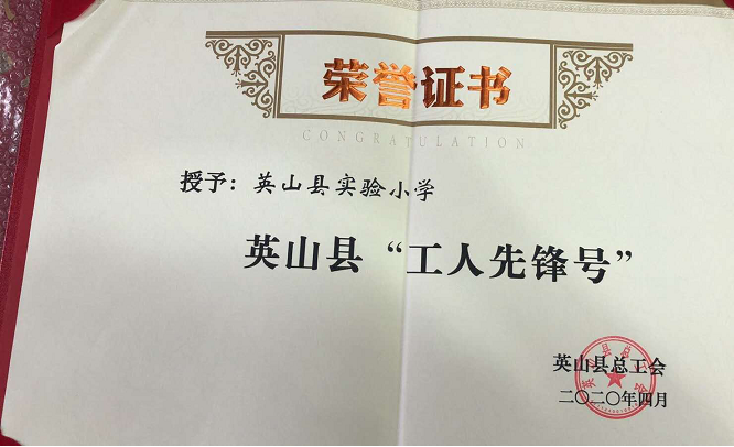 清风网讯(通讯员 张红英 张荣光) 6月29日,英山县总工会“省市县五一劳动奖章工人先锋号“表彰会在县人民医院六楼会议室举行。县实验小学获县“工人先锋号“荣誉称号。