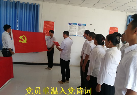 “我志愿加入中国共产党……”托万克塔勒克村党员干部在党旗下重温入党誓词、重忆入党经历、重问入党初心。