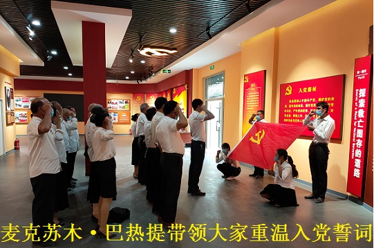 随后在村党支部书记麦克苏木•巴热提带领下,重温了入党誓词,听铿锵有力声音“我志愿加入中国共产党,拥护党的纲领,遵守党的章程,履行党员义务,执行党的决定,严守党的纪律,保守党的秘密,对党忠诚,积极工作,为共产主义奋斗终身,随时准备为党和人民牺牲一切,永不叛党。”