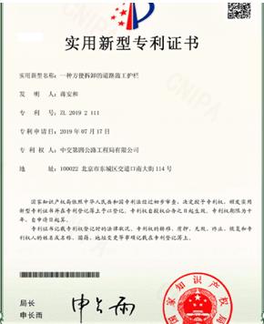 清风网讯(中交四公局 卢金山)继一项道桥砼检测装置斩获实用新型专利后,中交四公局在道路施工护栏方面的一项创新获得了国家知识产权局授权。