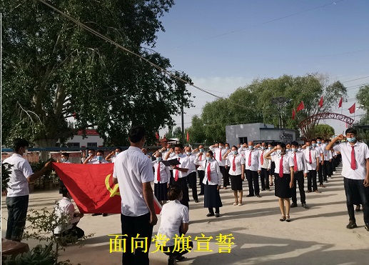 九点三十分,升国旗仪式正式开始,全体人员面向国旗在飘扬的国旗下整齐肃立、唱国歌、行注目礼,在雄壮的国歌声中,鲜艳的五星红旗缓缓升起,仪式结束后,在鲜艳的党旗下,全体党员举起右手、紧握拳头,跟随领誓人庄严宣誓。