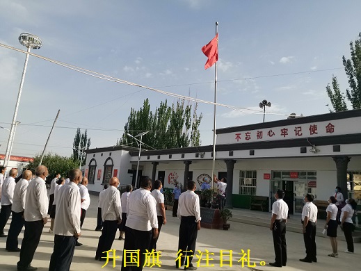 访惠聚第一书记阿布拉江•依马木尼牙孜说:“在“七一”建党节我们举行庄严肃穆的升国旗仪式,就是要牢记历史,筑牢信念,以饱满的工作热情,扎实的工作态度,全力做好“访惠聚”工作。”