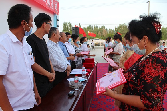 “建党节是伟大的中国共产党的生日,也是我们所有党员的节日,能在建党节节庆活动中以歌唱的形式祝福我们中国共产党,我觉得很自豪。因为我平常注重庭院卫生与美化,大家一致评选我的家庭为‘美丽庭院’,在建党节节庆活动中受到了表彰,我觉得很幸福,祝愿我们的党和国家繁荣昌盛。”团结新村党支部党员米纳瓦尔·阿布拉高兴地说。