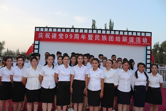 团结新村第一书记、工作队队长司热吉丁·哈斯木说:“7月1日,是2020年下半年的第一天,也是我们伟大的中国共产党成立99周年,是一个值得纪念和展望的日子。2020年上半年,全体党员干部坚持以习近平新时代中国特色社会主义思想为指导,按照自治区党委、地委、阿克苏检察分院党组、县委各项决策部署,紧紧围绕社会稳定和长治久安工作总目标和自治区“1+3”重点工作部署,用实际行动把使命和担当写在了维护稳定、抗击疫情、服务群众的第一线、最前沿,实现了村情持续稳定、村容村貌持续改善、群众生活水平持续提高的良好局面,我们为之欣慰。建党节之际,我们通过表彰先进,开展歌舞文艺表演等大众喜闻乐见的形式,既弘扬了爱国、爱党深厚感情,又增进了各族干部群众之间的感情,进一步凝聚起了广大干部群众建设平安和谐富裕美丽乡村的强大合力。”