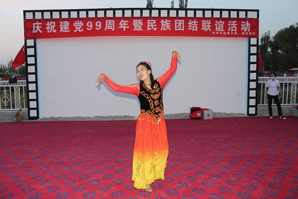 清风网讯 (新疆维吾尔自治区人民检察院阿克苏分院;李翔翔)历经99载辉煌岁月,伟大的中国共产党迎来了99岁生日,“七·一”建党节之际,新疆维吾尔自治区人民检察院阿克苏分院驻团结新村工作队、村两委、结亲干部和群众以“党旗映天山“为主题举办了庆祝建党99周年暨民族团结联谊活动,共同为伟大的中国共产党庆生。