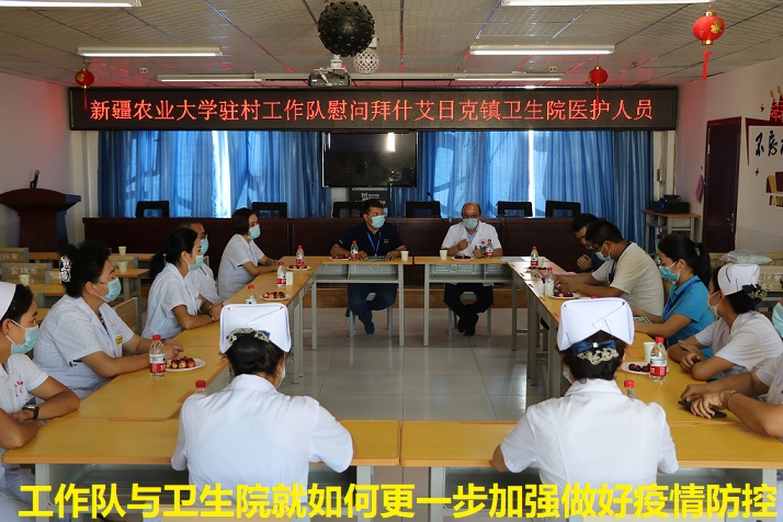 清风网讯(新疆农业大学;阿拉法特·克依木/摄影:新疆农业大学;侯伟伟)在新疆新型冠状肺炎疫情防控依然严峻而紧张的形势下,阿瓦提县拜什艾日克镇卫生院的医护人员不畏艰险、不辞辛苦坚守在基层疫情防控一线。古尔邦节来临之际,为表示对卫生院医护工作人员的关心和感谢,7月25日,新疆农业大学驻阿瓦提县拜什艾日克镇“访惠聚”工作队在校党委常委、宣传部部长、工作队总领队、托万克拜什艾日克村第一书记康华的带领下下,来到拜什艾日克镇卫生院,为一线医护人员送去慰问品和亲切的问候。