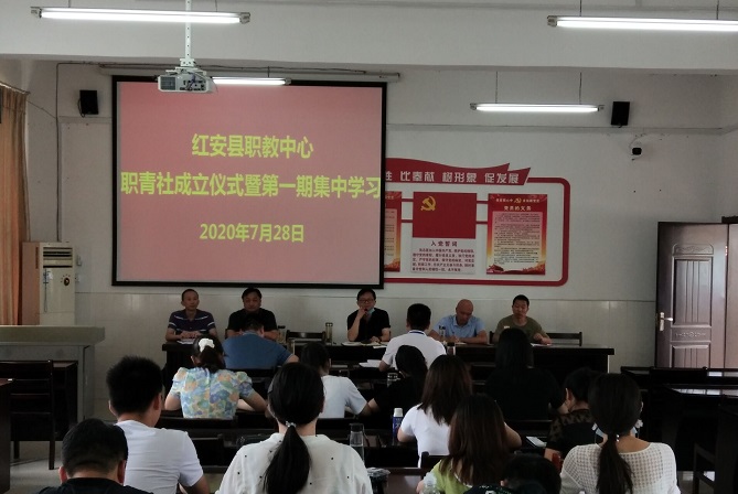 清风网讯(通讯员:梁小友)7月28日下午,红安职教中心举行职青社开班仪式并开展第一期集中学习,校党委成员、职青社成员共30人参加,副校长阮祥坤举行开班仪式。