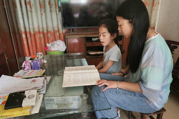 一周前志愿者来到刘霁娴小朋友家中,她还在准备期末考试。如今期末考试成绩出来,刘霁娴小朋友拿到了“三优”的好成绩,他的父母也十分满意:“同时,我们也希望志愿者能够多带她看看书,并且辅导她完成暑期作业。”在一周时间里,志愿者和孩子渐渐熟悉彼此,小朋友敢于提出自己的问题。对于孩子的问题,志愿者耐心解答,提出不同的解题思路,使小朋友的思维活跃起来。课后志愿者和孩子一起阅读小说、杂志、漫画,交流各自的想法,书籍把志愿者和孩子的距离拉近。