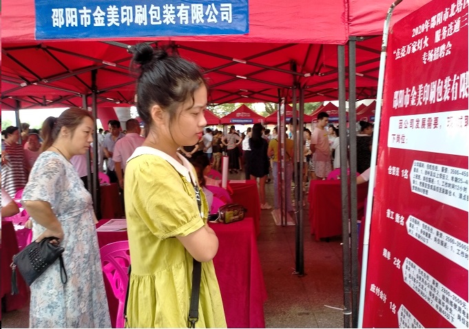 活动旨在为民营企业、中小微企业等各类用人单位提供选才平台,促进2020届高校毕业生、贫困劳动力、失业人员、下岗(待岗)职工等群体求职就业。招聘现场,求职者络绎不绝,热闹非凡,不少摊位前挤满了浏览信息、咨询情况、填表登记的求职人员。“这次招聘会有适合我的岗位,真是来对了。”前来应聘湖南湘窖酒业讲解员岗位的刘女士开心地说道。