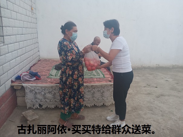 疫情无情,人间有爱。疫情防控期间,为保障玉斯屯克帕万拉村辖区村民日常生活需要,物资保障组每天24小时为辖区群众服务。村“两委”和“访惠聚”驻村工作队的干部更是辖区群众的贴心人。在日常走访过程中得知个别群众需要药品,便从村医那里帮忙买回药品送到家门口;得知部分群众家里缺少蔬菜,村“两委”和“访惠聚”驻村工作队干部便从自己种植的菜园里采摘时令蔬菜亲自送到需求的群众家里;得知群众家里缺少牲畜草料,便组织村干部和党员为其打草送到家里;在他们的关心和支持下,让疫情防控一线增添了温暖和色彩,形成了一道亮丽的风景线。