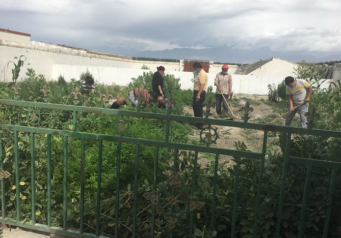 “访惠聚”工作队严格按照庭院规划布局,动员村民大力整治庭院环境,并将庭院按照生活区、种植区、养殖区进行隔离区分,整理残墙断壁以及庭院周边的围护结构,清除房前屋后卫生死角,平整院内土地、铺设地坪、种菜种花、清除杂草、搭建葡萄架,使庭院干净整齐。
