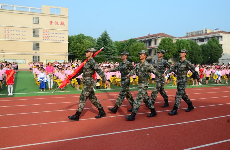 开学典礼开始,学校邀请岳阳县人民武装部的战士们与全体师生一道进行庄严的升旗仪式。注视徐徐升起的五星红旗,全场师生热血沸腾。