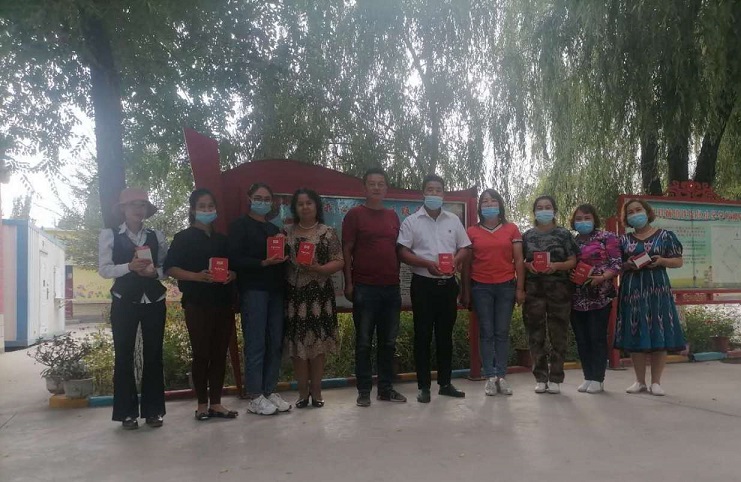 9月10日,拜城镇铁提尔村工作队第一书记希尔古丽·热西丁和村党支部书记张江山分别代表驻村工作队和村两委班子,前往铁提尔村幼儿园为教师送去祝福。